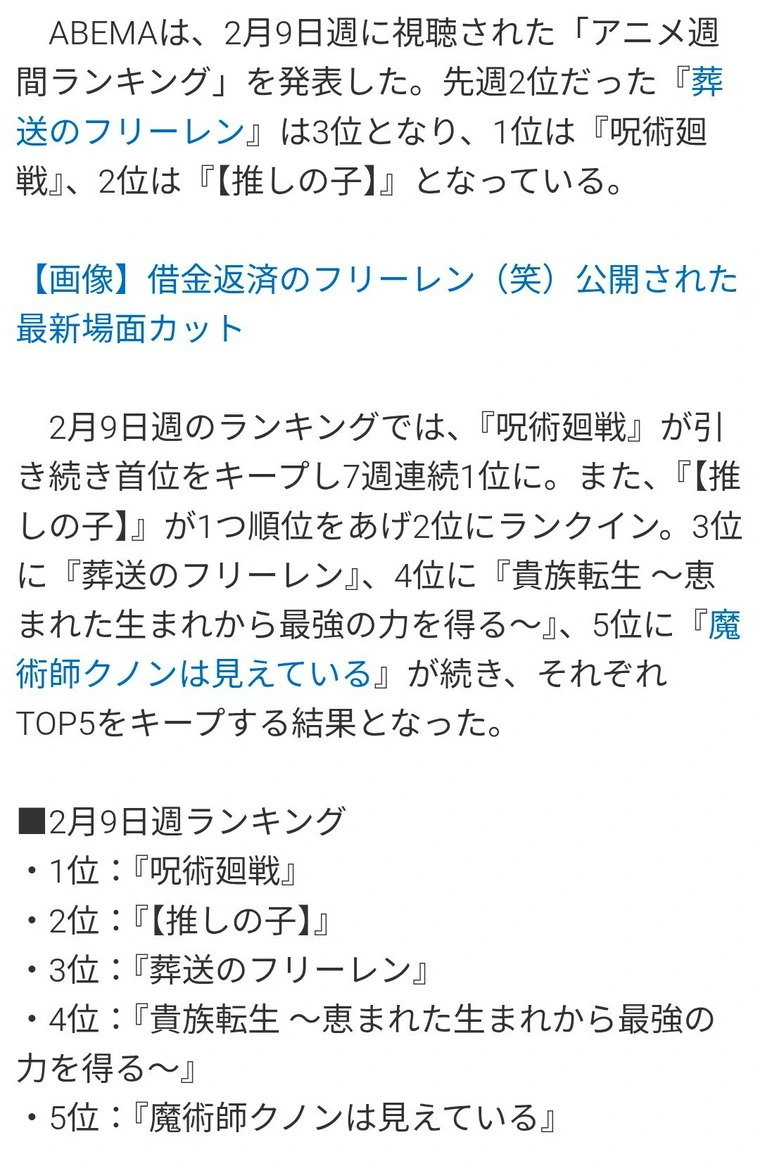 ネトフリもABEMAも上位のラインナップほぼ同じ呪術フリ推しの子で草